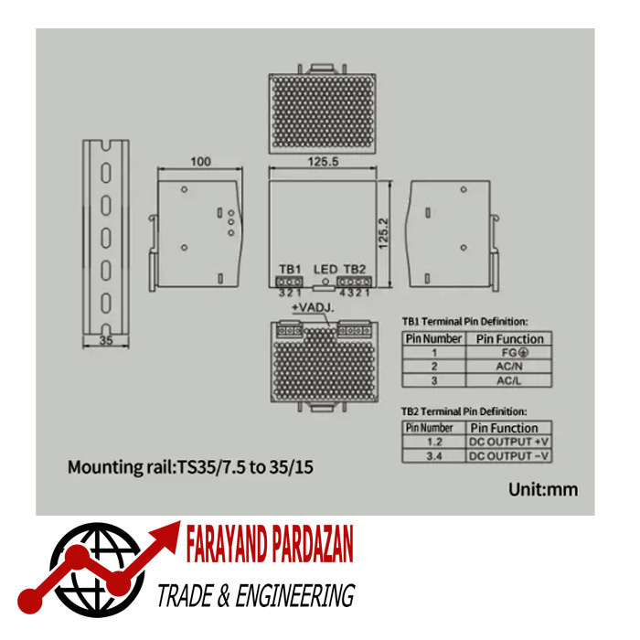 | ولتاژ تست عایقی | ورودی–خروجی ۱.۵ kVAC / ورودی–بدنه ۱.۵ kVAC / خروجی–بدنه ۰.۵ kVAC |