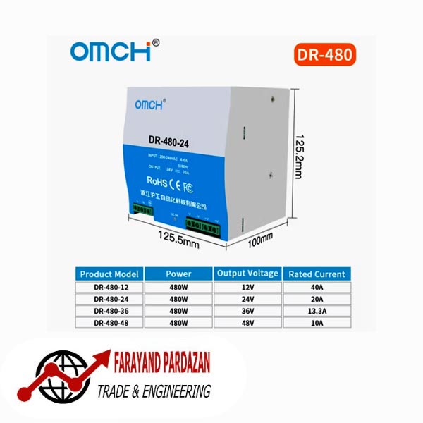 🔧 مشخصات فنی منبع تغذیه OMCH DR-480-24