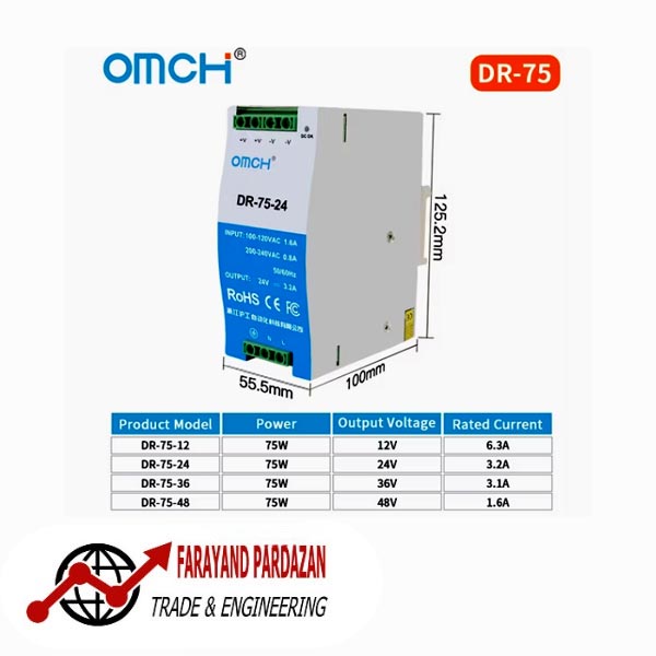 مشخصات فنی منبع تغذیه OMCH DR-75-24